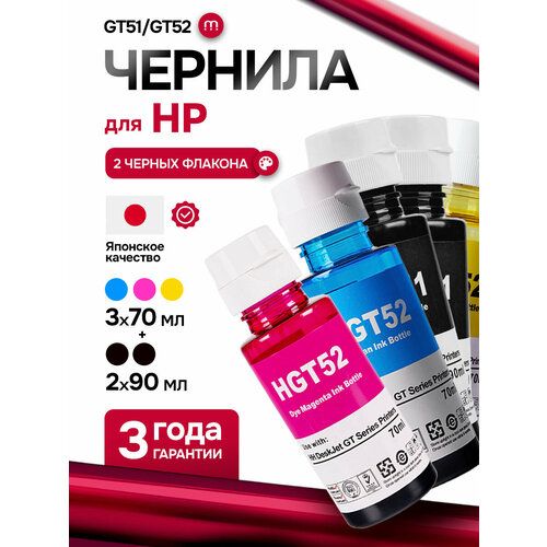 Совместимые чернила GT-51 / GT-52 для заправки струйного принтера и МФУ HP: