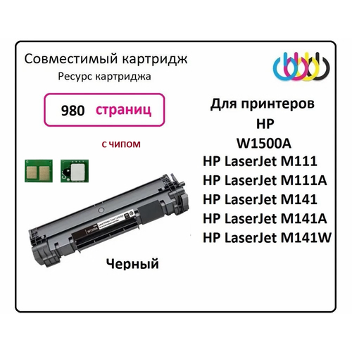 Найти - Совместимый картридж HP W1500A, HP LaserJet M111, HP LaserJet M111A, HP LaserJet M141, HP LaserJet M141A, HP LaserJet M141W, С чипом