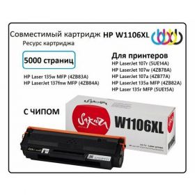 Совместимый картридж HP 106XL, W1106XL с чипом для лазерных принтеров и МФУ HP.