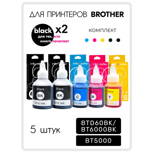 Совместимые чернила BTD60BK / BT6000BK, BT5000C, BT5000M, BT5000Y для заправки струйного принтера и МФУ Brother: