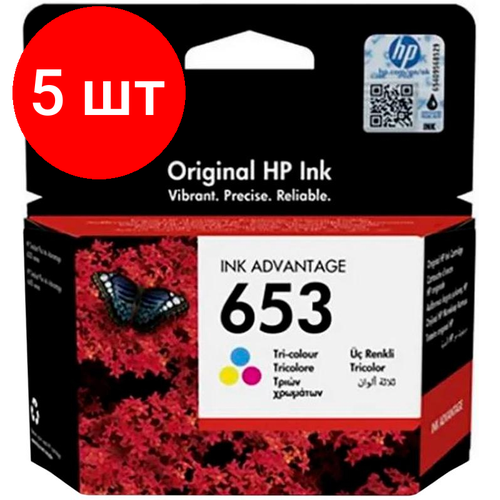 Найти - Комплект 5 штук, Картридж струйный HP 653 3YM74AE CMY для DeskJet Plus 6075, 6475
