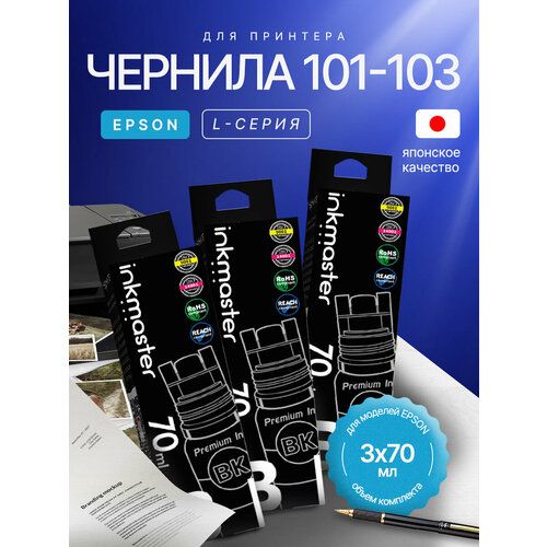 Найти - Комплект чернил 101/103 (Key Lock) 3 черных (Bk) Inkmaster для принтеров и МФУ Epson L-series L-3100, L-3150, L-3151, L-4150, L4160, L4260, L7160 и тд