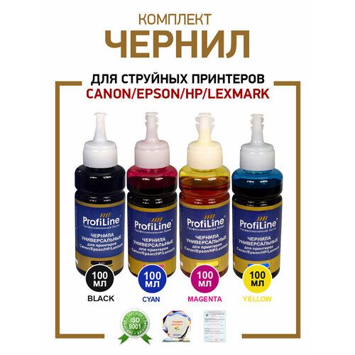 Найти - Чернила ProfiLine для принтера Canon / Epson / HP / Lexmark , комплект 4 цвета по 100мл, универсальные, на водной основе