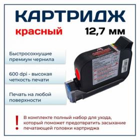 Картридж высококачественный продукт от производителя MarkMann. Заправлен сольвентными чернилами красного цвета. Подходит для ручного маркиратора типоразмера 2588, 2588+. Чернила водостойкие - не смываются водой, обладают сверхпрочной адгезией, что обеспечивает четкую и яркую печать на любой темной поверхности. Высота печати картриджа - 12,7 мм, а разрешение - 600 DPI. Картридж можно перезаправлять, что позволяет значительно сэкономить. Сольвентные чернила картриджа MarkMann быстро сохнут. В картридже используется технология HP, что гарантирует высокое качество и долговечность печати. Емкость картриджа составляет 42 миллилитра, ресурс картриджа - 800 000 символов, благодаря чему широко используется в различных областях, таких как маркировка товаров, упаковки, этикеток и т. д. Картридж сольвентный для датера MarkMann обеспечивает высокую производительность и долговечность, а также возможность использования на любой поверхности, что делает его универсальным и удобным в использовании.