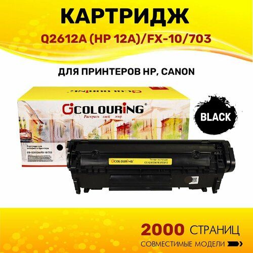Найти - Картридж Colouring Q2612A/FX-10/703 (HP 12A) для принтеров HP LaserJet, 2000 копий, лазерный, совместимый