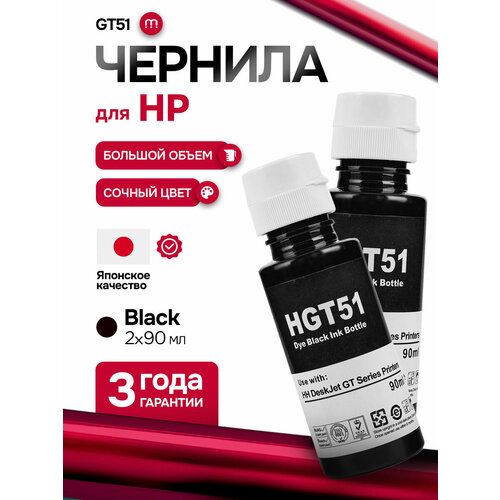 Комплект чернил GT51 для струйных принтеров и МФУ HP состоит из двух флаконов по 90 мл каждый. Чернила водорастворимые, что обеспечивает высокое качество печати и экономичность использования.