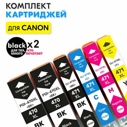 Комплект картриджей PGI-470 / CLI-471 XL предназначен для струйных принтеров и МФУ Canon PIXMA TS5040, TS6040, TS8040, TS9040, MG5740, MG6840, MG7740. В комплект входят 6 картриджей: 2 черных, 1 фото-черный, 1 голубой, 1 пурпурный и 1 желтый.