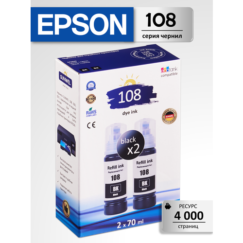 Найти - Чернила краска для принтера EPSON 108, набор 2 по 70 мл, черный, эпсон EcoTank L8050, L18050, L8058, L18058