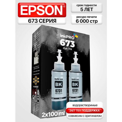 Краска для принтера EPSON 673 на водной основе (dye ink), набор из черного цвета. Чернила подходят для заправки оригинальных и совместимых картриджей, системы непрерывной подачи чернил (СНПЧ), перенаправляемых картриджей (ПЗК) струйных принтеров.