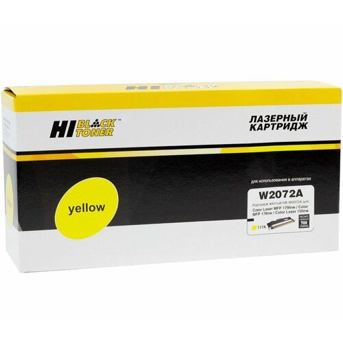 Картридж совместимый HB-W2072A Yellow для HP CL 150a/150nw/MFP178nw/179fnw, 117A. Производство: Hi-Black, Китай. Производитель принтера: HP. Цвет: Черный. Тип печати: для лазерной печати. Указанный ресурс при печати текстовых страниц А4 при 5% заполнении площади листа. Гарантия: 1 год. Повышенный ресурс, отличное качество печати Без чипа