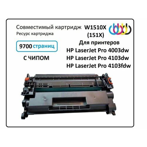 Картридж HP 151X (W1510X) - это совместимый расходный материал для оргтехники, разработанный специально для использования в принтерах HP LaserJet Pro 4003dw, HP LaserJet Pro 4103dw и HP LaserJet Pro 4103fdw.