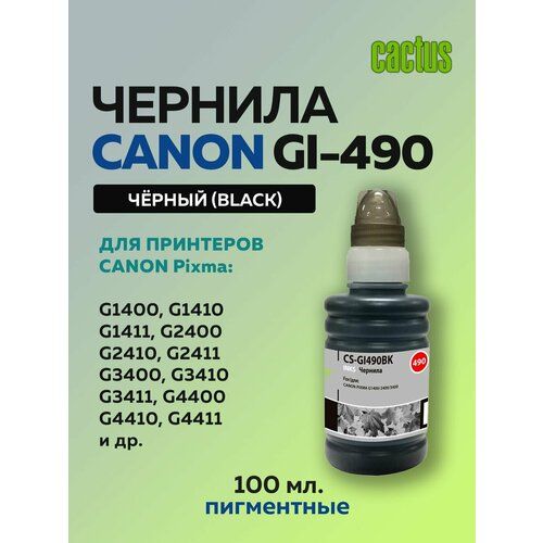 Найти - Чернила Cactus GI-490 черный пигментный 100 мл для Canon Pixma G1400, G2400, G3400