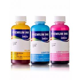 Высококачественные (Premium Ink) водорастворимые чернила, цвета - желтый, светло-голубой, светло-пурпурный, в оригинальной заводской упаковке. Краска заменяет картриджи (бутылочки) Epson 108, 056, 057, подходят для заправки и печати цветных струйных фото принтеров и МФУ Epson Ecotank L8050, L8058, L18050, L18058.