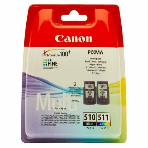 Картридж CANON PG-510+CL-511 содержит в себе два цвета: черный и многоцветный. Это позволяет получать яркие и насыщенные изображения, а также четкие и аккуратные документы.