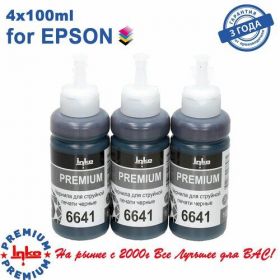 Чернила (краска) для принтеров Epson L100, L110, L120, L132, L1300, L200, L210, L220, L300, L310, L350, L355, L550, L555, L566, L1300, L132, L222, L312, L362, L364, L366, L456, L486, L382, L386, L3050, L3060, L3070 (комплект 3 черных цвета x 100г). Аналог оригинальных чернил Epson 664