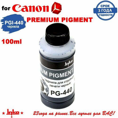 Чернила для принтера Canon PIXMA MG2140, MG2240, MG3140, MG3240, MG3540, MG3640, MG3640S, MG4140, MG4240, TS5140, MX374, MX376, MX394, MX434, MX454, MX474, MX514, MX524, MX534 черный пигментный 100 мл. Краска для картриджей Canon PG-440 изготовлена из высококачественного пигмента производителем получившим признание за высокое качество в странах Европейского Союза.