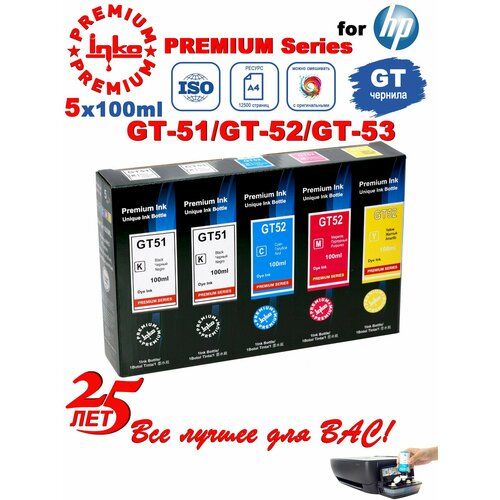 Найти - Чернила для HP GT51/GT52 комплект 5x100мл краска для принтеров DeskJet 5810 5820, Ink Tank 115 116 118 310 315 318 319, Wireless 410 415 418 419, Smart Tank 450 455 457 500 510 515 530 610 615