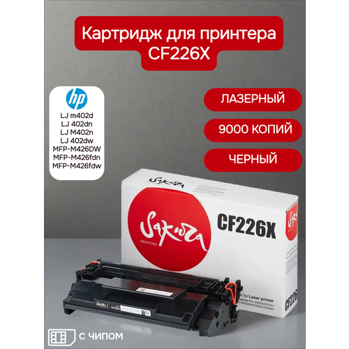 Найти - Картридж Sakura CF226X для HP LJ Pro m402d / 402dn / M402n / 402dw / MFP M426DW / 426fdn / 426fdw, 9000, черный