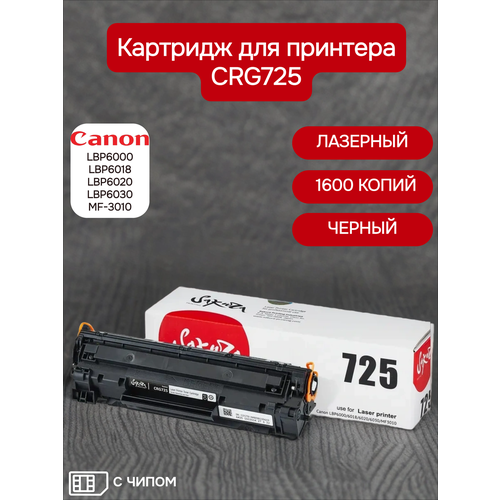 Картридж Sakura CRG725 предназначен для лазерной печати и совместим с различными моделями принтеров и МФУ Canon, включая LBP6000, LBP6018, LBP6020, LBP6030 и MF3010.