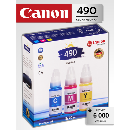 Найти - Чернила для принтеров CANON PIXMA GI-490, набор 3 цвета, 210 мл.