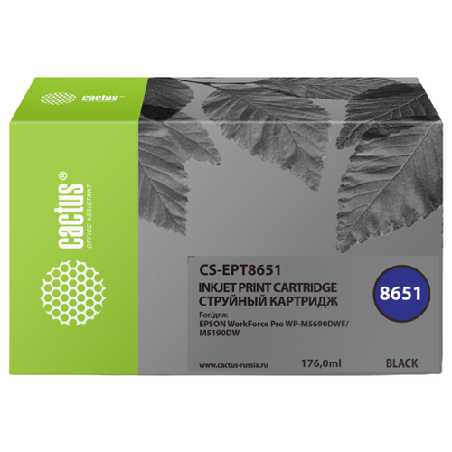 Этот совместимый картридж Cactus CS-EPT8651 разработан специально для эффективной работы с принтерами Epson серии WF5190/5690. Он предлагает высокий ресурс в 8000 страниц, что особенно ценно при большом объёме ежедневной печати. Чёрные чернила обеспечивают чёткие тексты и графику, подходящую как для документов, так и для презентаций.