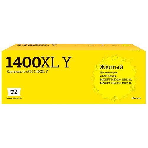 Струйный картридж T2 IC-CPGI-1400XL Y для принтеров Canon, желтый (yellow). Подходит для принтеров: Canon MAXIFY MB2040, MB2140, MB2340, MB2740. Оригинальный картридж - PGI-1400XL Y