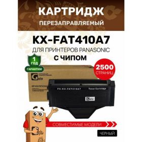 Совместимый лазерный картридж KX-FAT410A7 подходит для принтеров Panasonic KX-MB1500 / KX-MB1520 / KX-MB1530 / KX-MB1536 . При производстве расходных материалов GalaPrint используются только качественные комплектующие. Картриджи GalaPrint не уступают оригинальным, полностью совместимы с заявленными моделями принтеров, обеспечивают естественную цветопередачу и хорошее качество печати. Важно. Производитель имеет право, не уведомляя заказчика, вносить изменения в конструкцию и комплектацию картриджа, без ухудшения его потребительских свойств. В случае наличия оранжевых транспортировочных фиксаторов, защитных крышек, шторок и чеки/запорной ленты их нужно извлекать. Ресурс - 2500 страниц формата А4 при 5% заполнении страницы.
