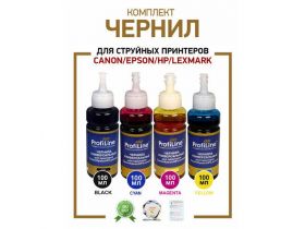 Чернила ProfiLine для принтера Canon / Epson / HP / Lexmark , комплект 4 цвета по 100мл, универсальные, на водной основе 103063917609