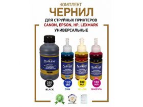 Чернила ProfiLine для принтера Canon / Epson / HP / Lexmark , комплект из 4 цветов BK-250мл, C/M/Y по 100мл, универсальные, на водной основе 101849473563