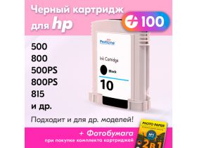 Картридж для HP C4844A (№10), HP Designjet 500, 800, 500PS, 800PS, 815, 820, 1 шт, с чернилами (с краской) для струйного принтера, Черный (Black), увеличенный объем, заправляемый 102792621859