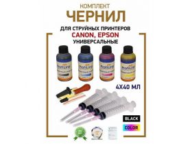 Чернила / Краска ProfiLine для принтера Canon/Epson, комплект 4 цвета по 40мл, универсальные, на водной основе 103779649395