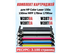 Комплект картриджей для HP Color Laser 150a 150nw MFP 178nw 179fnw - W2070A - Black / чёрный, W2071A - Cyan / синий, W2072A - Yellow / жёлтый, W2073A - Magenta / пурпурный / красный - UNITON 103528528002