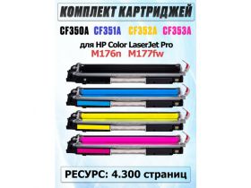 Комплект картриджей для HP Color LaserJet Pro MFP M176n M177fw CF350A - Black / чёрный, CF351A - Cyan / синий, CF352A - Yellow / жёлтый, CF353A - Magenta / пурпурный / красный - UNITON 102370341496