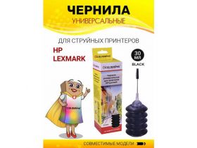 Чернила Colouring для принтера HP/Lexmark, 30мл, цвет черный, универсальные, на водной основе 103566022671