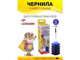 Чернила Colouring для принтера HP/Lexmark, 30мл, цвет голубой, универсальные, на водной основе 103566022672