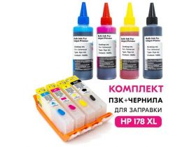 Перезаправляемые картриджи ПЗК HP 178XL с чернилами для HP PhotoSmart / DeskJet 3070 с авто-чипами, 4 цвета 101608505171