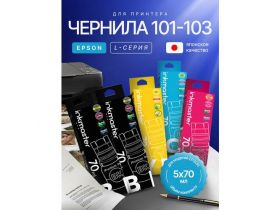Чернила 101/103 Key Lock для принтера Epson L-series L1110, L3100, L3150, L3160, L4150, L4160 и др, 280мл комплект из 4 цветов (по 70 мл), совместимые 1770521287