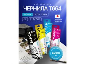 Чернила (краска) T664 для Epson L100 L110 L120 L121 L200 L210 L300 L350 L355 L550 L312 L366 L456 L486 L382 L386 тд, комплект заправки принтера 4 цвета 101217409978