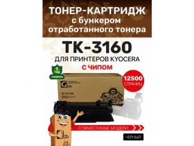 Картридж TK-3160 с бункером отработанного тонера для Kyocera EcoSys-P3045, 3050, 3055, 3060, M3145dn, 3645dn, черный (black), для лазерного принтера, совместимый 101264968339