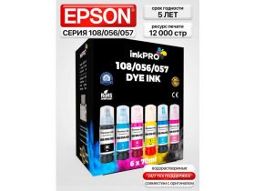 Чернила краска для принтера EPSON 108/056/057 6 цветов по 70 мл эпсон EcoTank L8050, L18050, L8058, L18058 4349994691