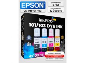 Чернила краска для принтера EPSON 103 101 004 EcoTank 4 цвета 400 мл L1110, L1210, L1250, L3100, L3101, L3110, L3111, L3118, L3150, L3151, L3156, L3160, L3200, L3210, L3211, L3218, L3250, L3251, L3256, L3258, L3260, L3262, L3266 и др. 103371610274