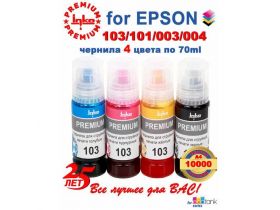 Чернила Epson 103 для принтеров L3100, L3101, L3110, L3111, L3150, L3151, L3156, L3160, L3250, L1110 вакуум 4x70мл INKO 102903766459