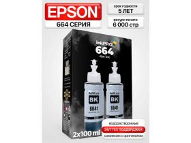 Чернила краска для принтеров Epson 664 2 шт черных 200мл L100, L110, L120, L130, L132, L200, L210, L220, L222, L270, L300, L310, L312, L350, L355, L362 103656500851
