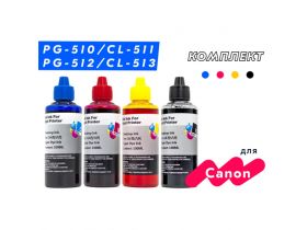 Универсальные чернила / краска для заправки струйных принтеров Canon (водные), 4 цвета*100 мл, совместимые Inkmaster 101258388269