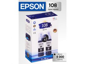 Чернила краска для принтера EPSON 108, набор 2 по 70 мл, черный, эпсон EcoTank L8050, L18050, L8058, L18058 103619292675
