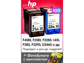 Картриджи для HP 21 XL, 22 XL, HP F4180, F2180, F2280, F380, F2290, D2460, PSC 1410 (Комплект из 2 шт) с чернилами, Черный (Black), Цветной (Color) 101871386200