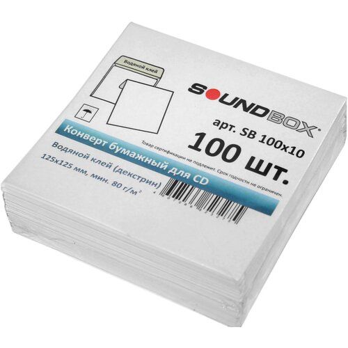 Найти - Конверты для СD/DVD дисков Soundbox белые, бумажные без окошка (упаковка 100 шт.) клей декстрин, 80 г/м2