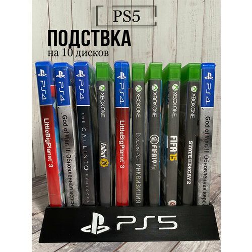 Подставка для дисков. PS4, PS5 открытая. Для вертикального хранения. Во избежание замятия обложки диска, рекомендуем задвигать диск с открытой стороны.