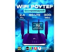 Мощный прошитый 4G LTE маршрутизатор с экраном / Wi-Fi роутер с сим картой, подключение до 32 устройств, скорость до 300 Мбит/с, синий + SIM в подарок 4693286140