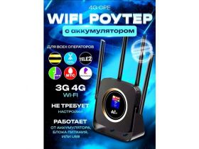 Высокоскоростной 4G LTE маршрутизатор с экраном / Wi-Fi роутер с сим картой и встроенным аккумулятором на 3000 мАч, скорость до 300 Мбит/с, черный + SIM в подарок 4477089146